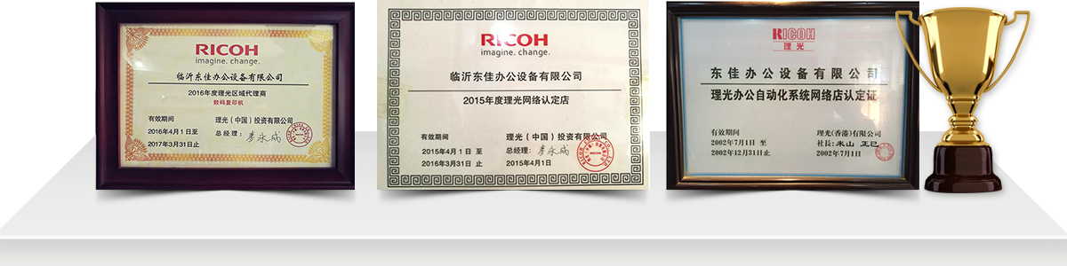 臨沂東佳辦公設(shè)備有限公司成立于1999年,是一家專(zhuān)賣(mài)臨沂理光打印機(jī),臨沂復(fù)印打印一體機(jī)等理光辦公設(shè)備及專(zhuān)業(yè)維修服務(wù)于一體的臨沂復(fù)印機(jī)租賃服務(wù)性公司,在多年來(lái)的努力拼搏下,公司發(fā)展的發(fā)展突飛猛進(jìn),自2002年至今連續(xù)十九年的理光辦公設(shè)備代理商,先后獲得了理光(我國(guó))授權(quán)臨沂總代理,理光數(shù)碼復(fù)印機(jī),一體機(jī)臨沂總代理,理光辦公設(shè)備網(wǎng)絡(luò)認(rèn)證店,理光辦公設(shè)備維修認(rèn)定店等產(chǎn)品代理資質(zhì)及維修資質(zhì)。并配備了大量理光數(shù)碼辦公設(shè)備原裝零配件及其系列的純正耗材。